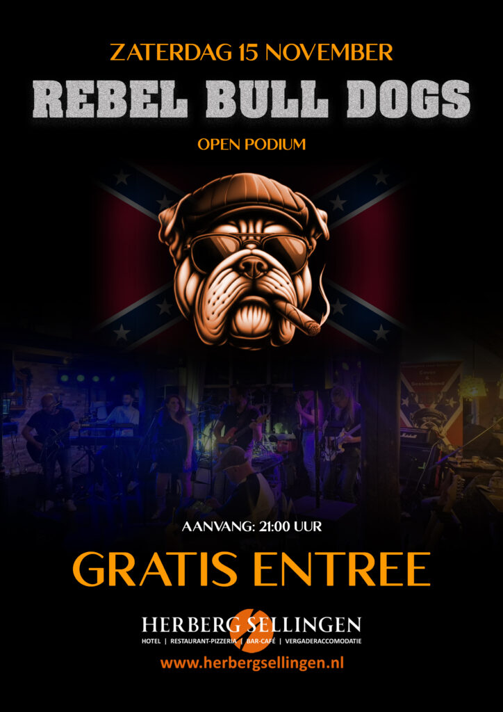 Wederom weer live Gezelligheid met de cover en sessie band Rebel Bulldogs. Breng het ook over aan wie offline is, samen maken we de avond compleet!